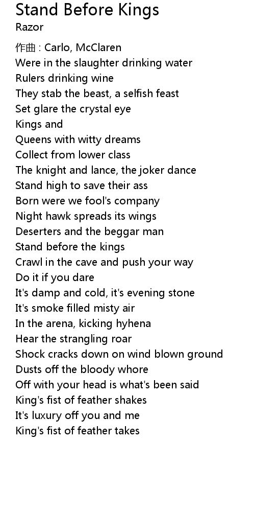 | 歌曲 | Stand Before Kings |