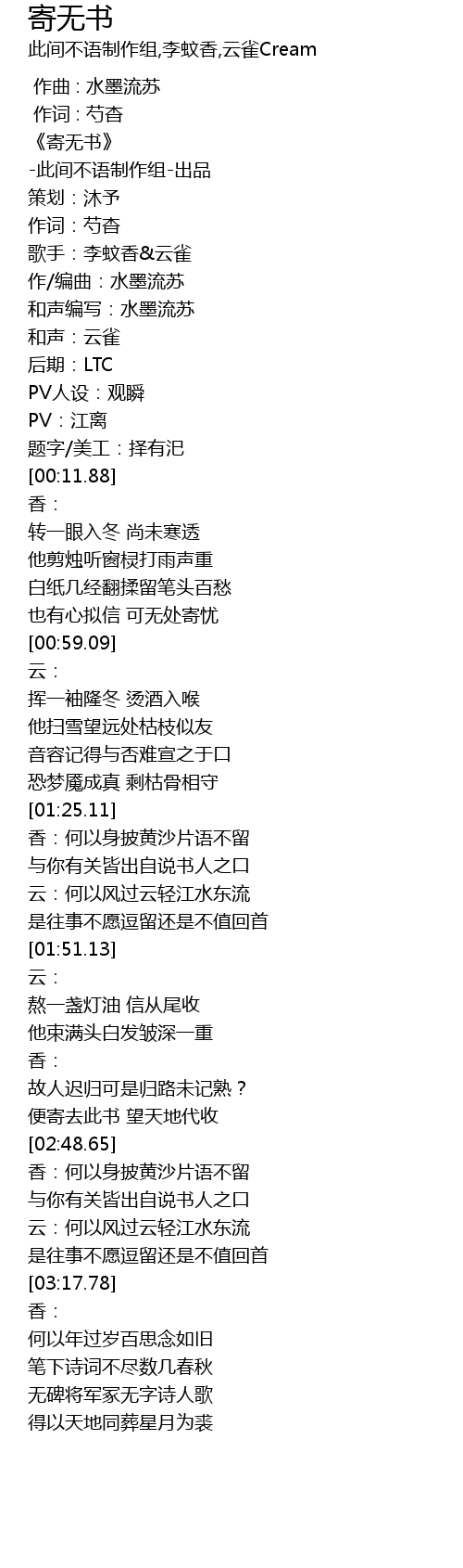 | [02:42.79] | 便寄去此书 望天地代收 |