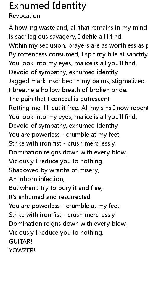 Exhumed Identity 歌词
