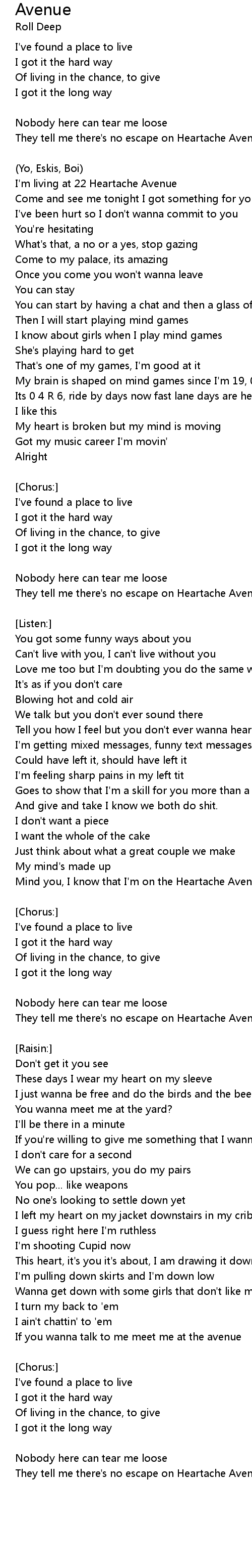 Mind you, I know that I'm on the Heartache Avenue waiting for my heart to break. |