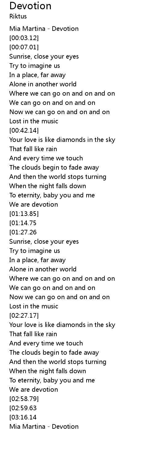 | [03:30.08][02:59.63] | Devotion, devotion, devotion... |
