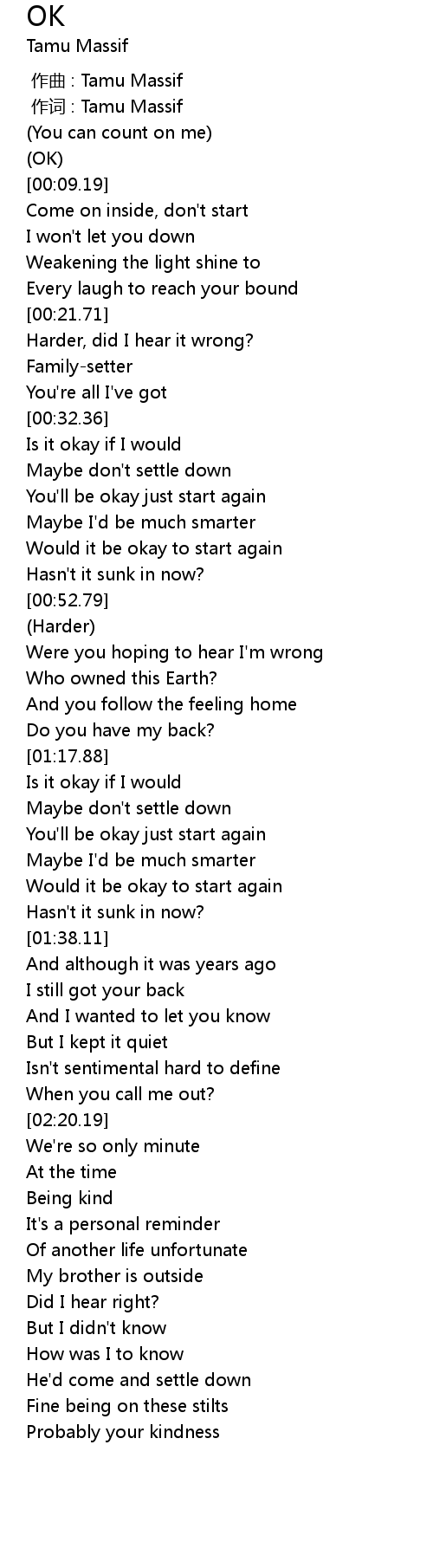 | [00:00.692] | 作词 : Tamu Massif |