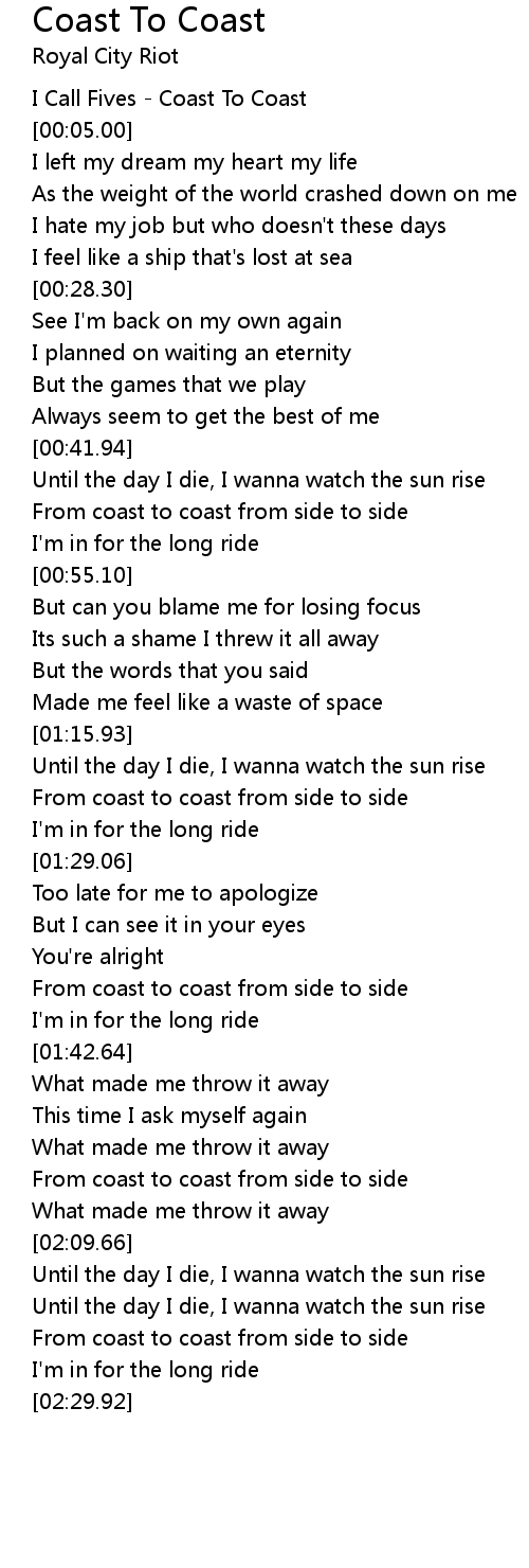 I Call Fives - Coast To Coast |