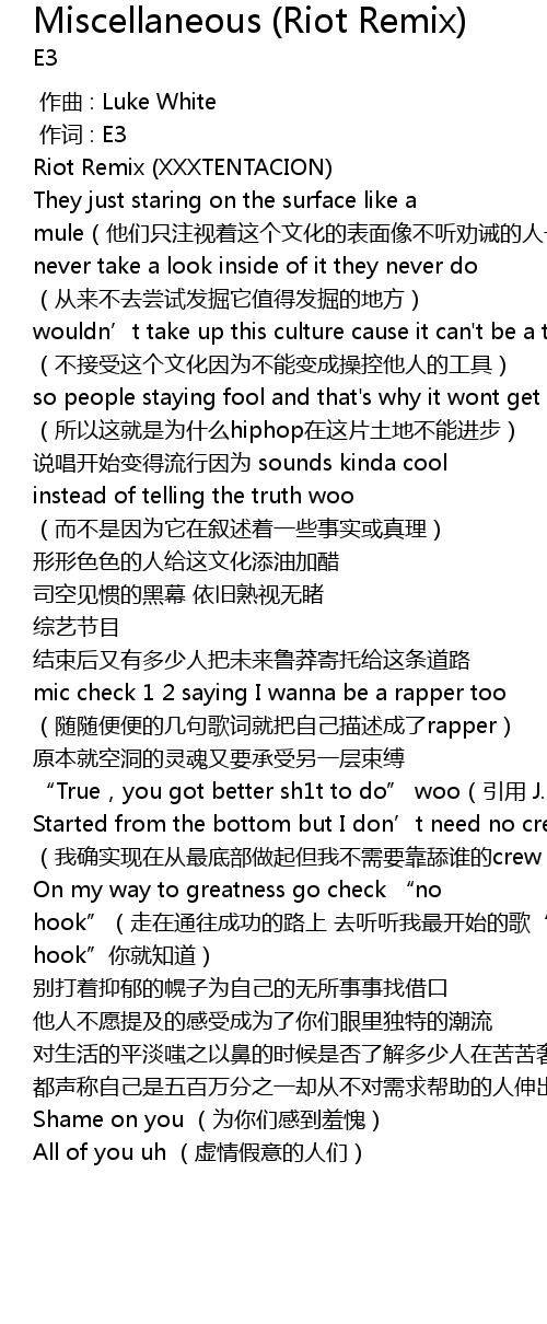 | 歌曲 | Miscellaneous (Riot Remix) |
