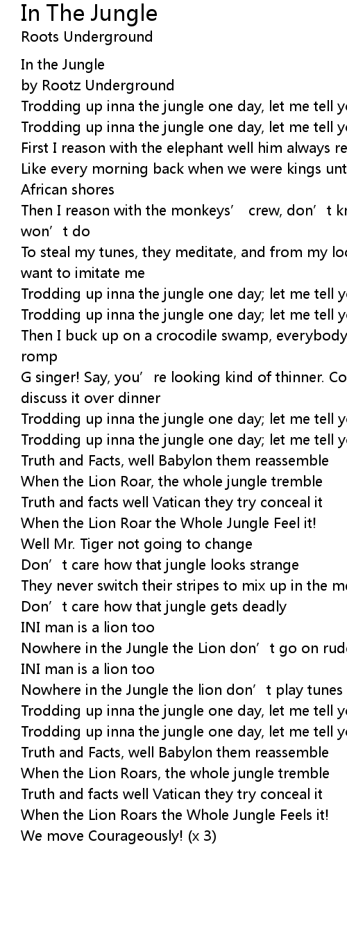 | Trodding up inna the jungle one day let me tell you what I encountered yeah | |