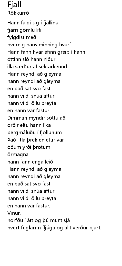 | hvert fuglarrin fljú ga og allt ver ur bjart. |