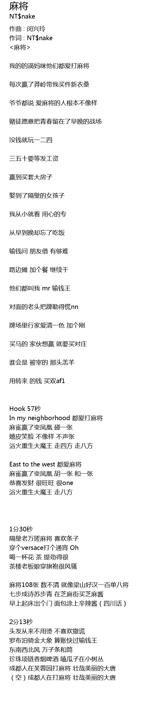 | 作词 : NT$nake | |