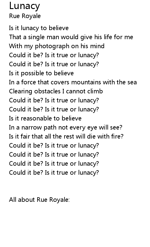 Is it lunacy to believe |