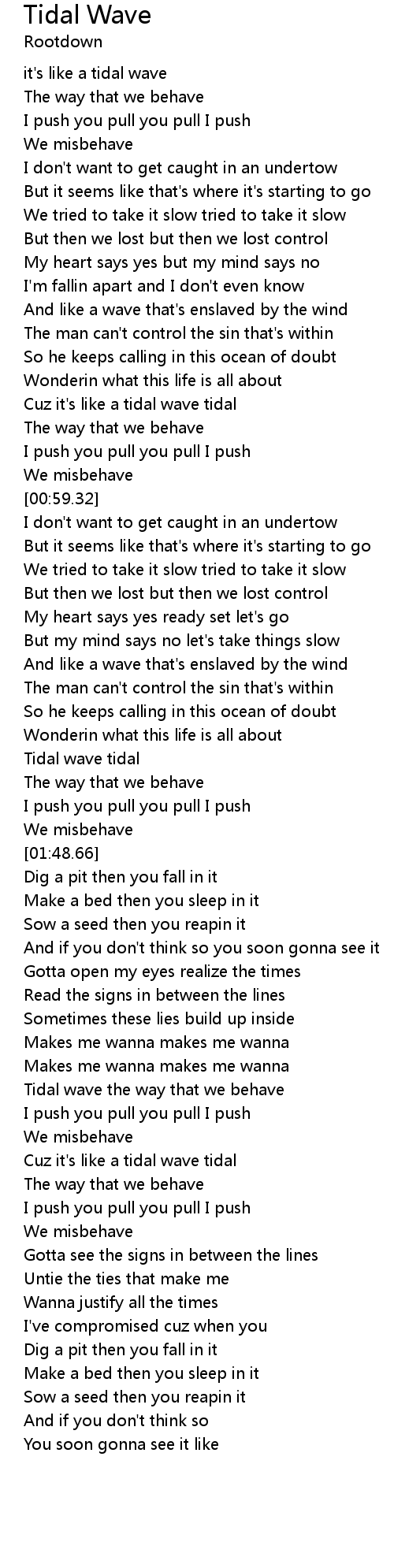 Cuz it's like a tidal wave tidal |