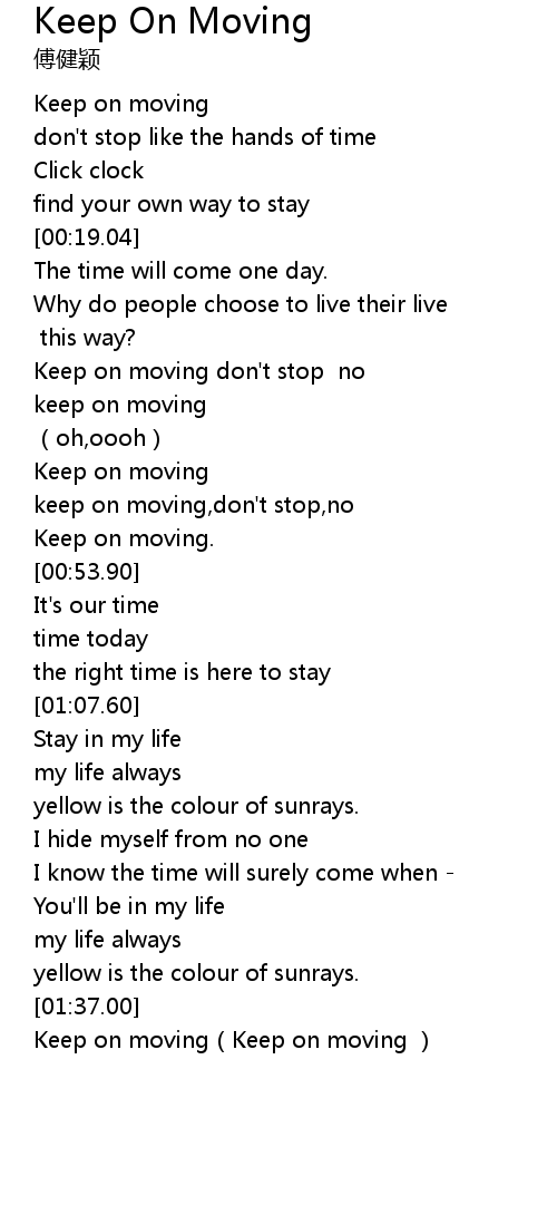| [01:37.81] | Keep on moving(Keep on moving ) |