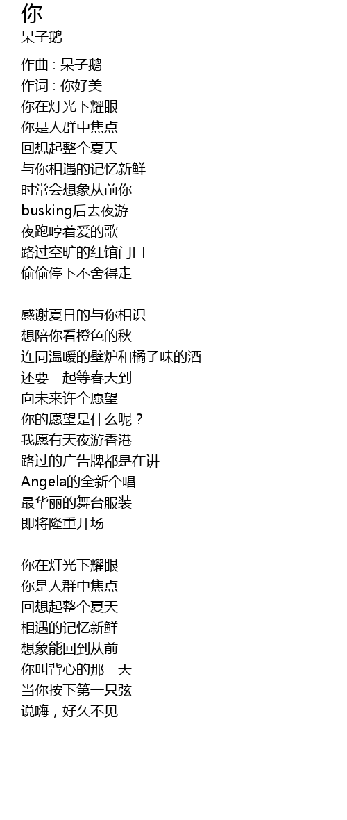 | 歌曲 | 你 |