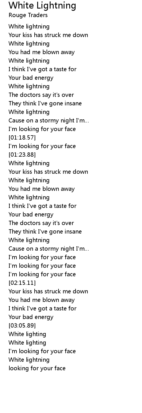 | [01:31.66] | White lightning |