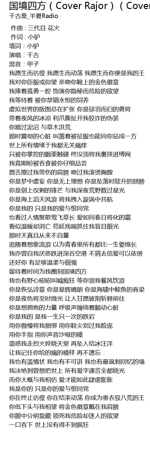 | 歌曲 | 国境四方(Cover Rajor)(Cover:Rajor) |