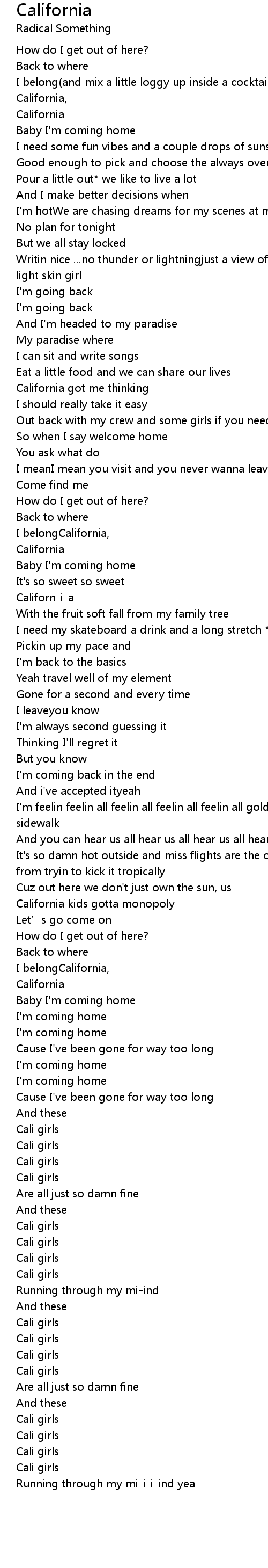 | 歌曲 | California |