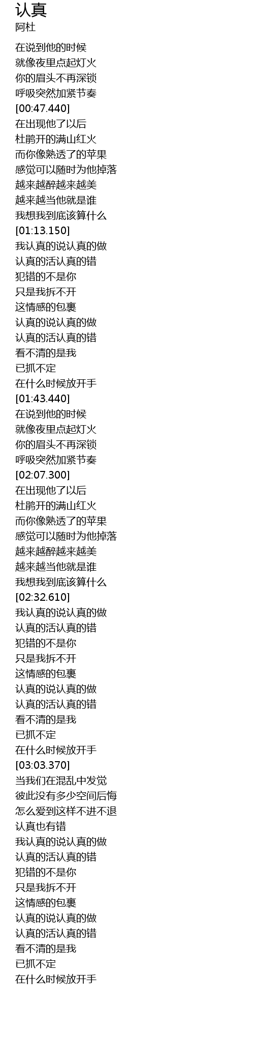 | [03:34.760] | 认真的活认真的错 |