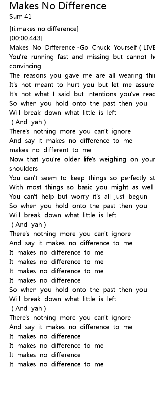 | [00:05.70] | Makes No Difference -Go Chuck Yourself(LIVE)-Sum 41 |
