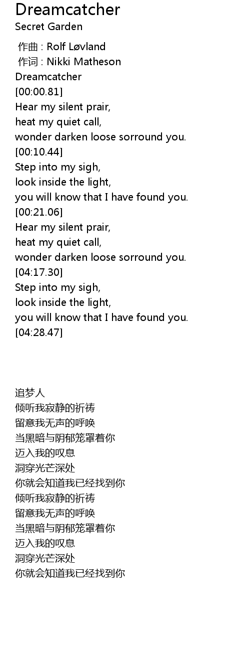 | [00:01.01] | 倾听我寂静的祈祷 |