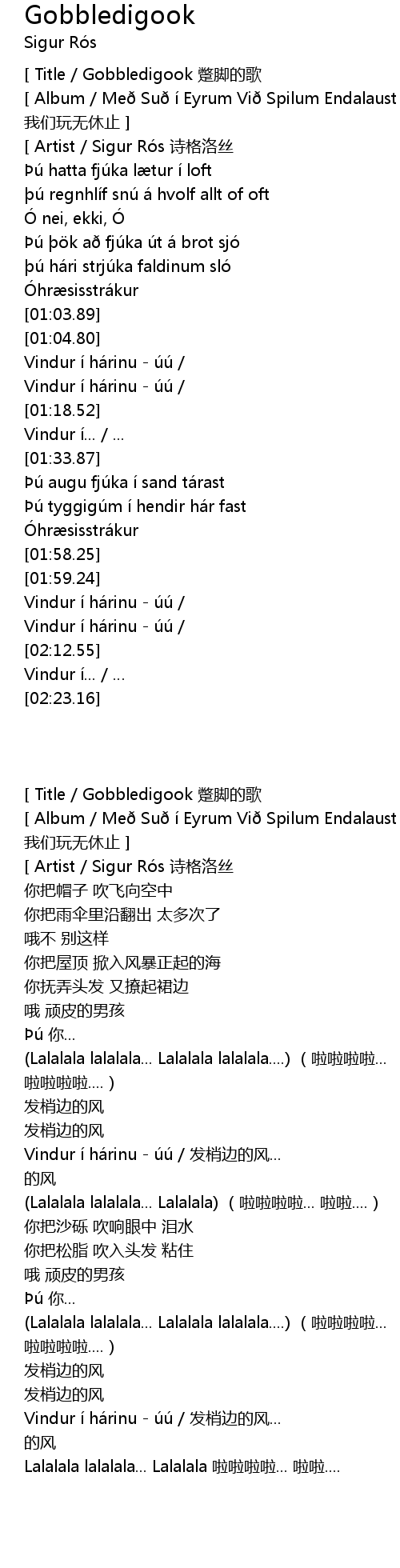 | [00:14.94][ Artist / Sigur Rós 诗格洛丝 ] | |
