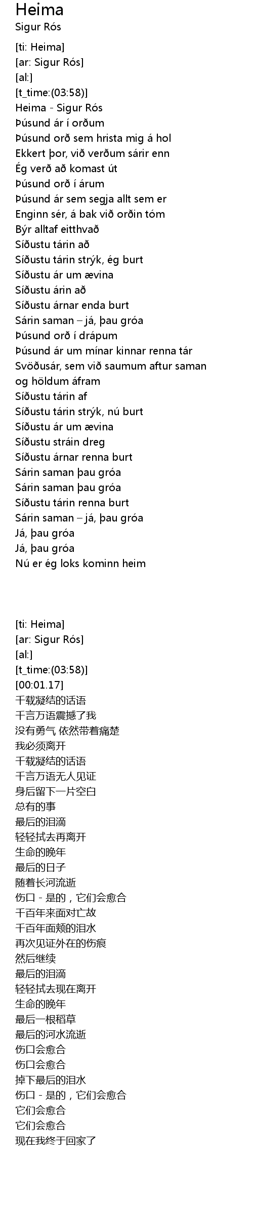 | [02:18.00] | Þúsund ár um mínar kinnar renna tár |