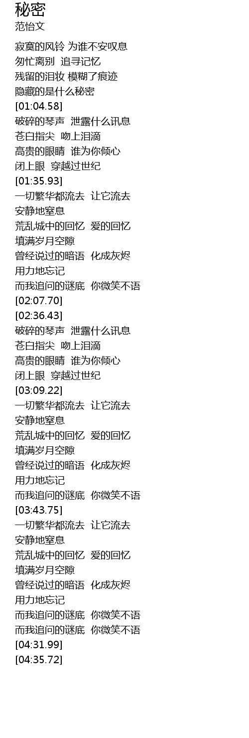 | [02:40.02] | 破碎的琴声 泄露什么讯息 |