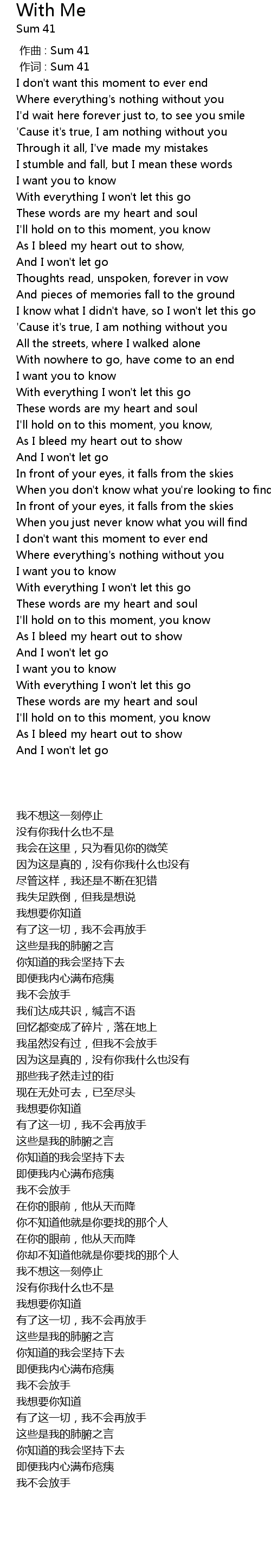 | [00:40.37] | 'Cause it's true, I am nothing without you |