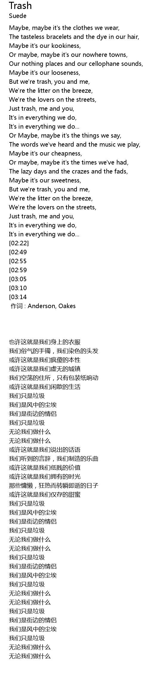 | [00:21] | 我们俗气的手镯,我们染色的头发 |