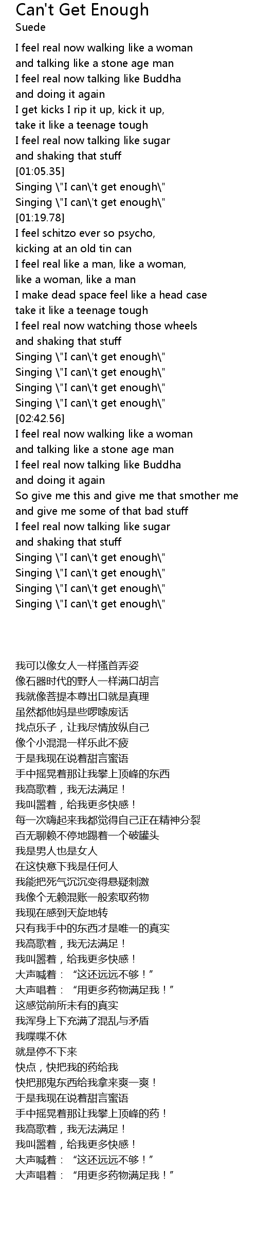 Singing \"I can\'t get enough\" |