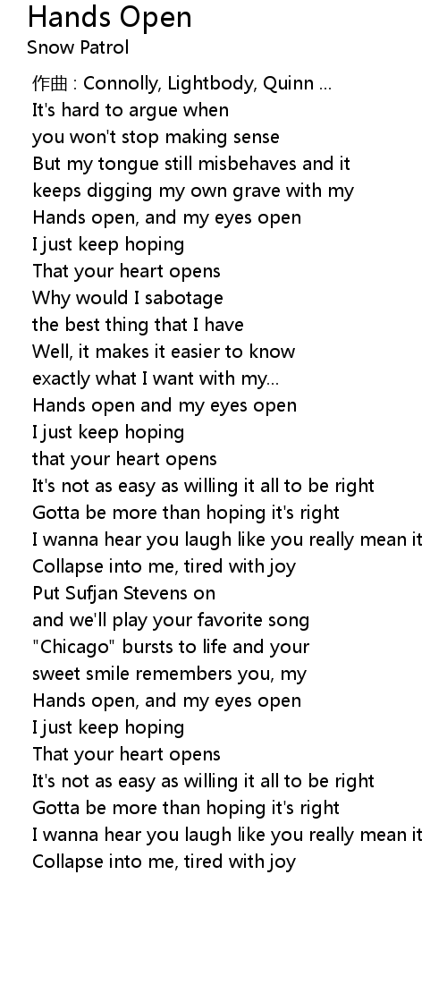 | 歌曲 | Hands Open |