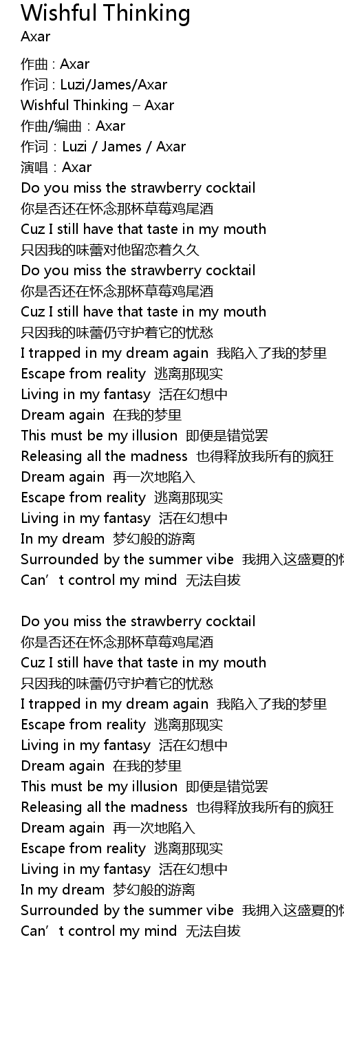 | [02:16] | Do you miss the strawberry cocktail 你是否还在怀念那杯草莓鸡尾酒 |