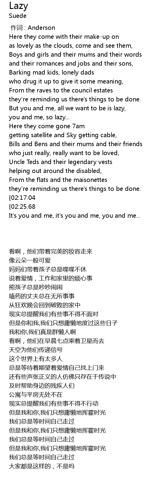 | [02:34.35][02:17.04][01:39.91] | But you and me, all we want to be is lazy, |