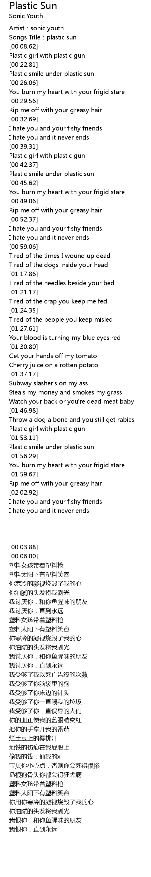 | [00:43.12] | 塑料太阳下有塑料笑容 |