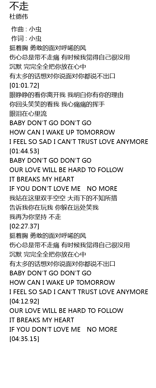 | [01:46.65] | BABY DON'T GO DON'T GO |