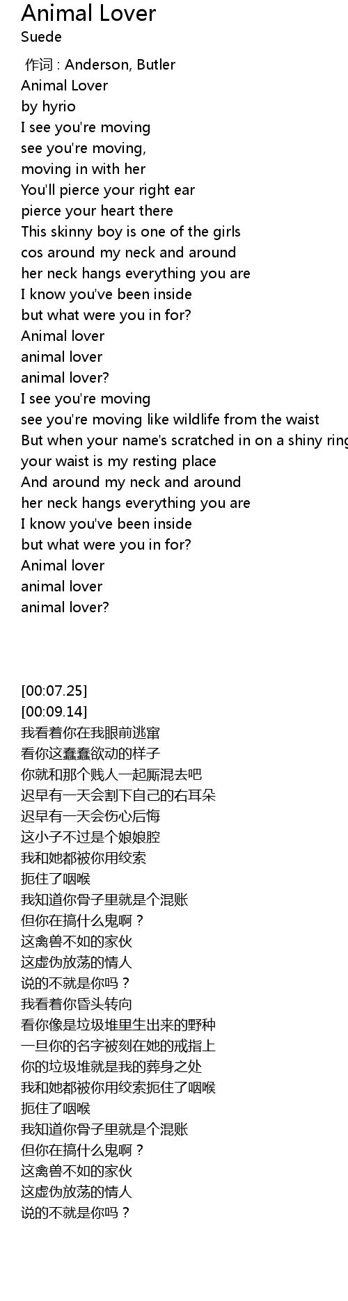 | [00:07.250] | Animal Lover |