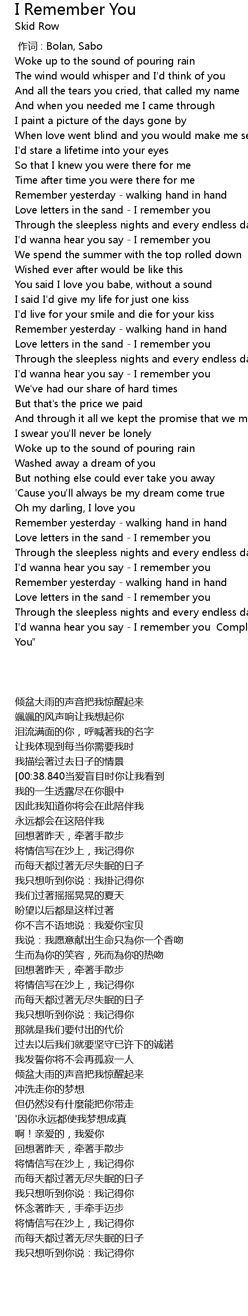 | [04:24.780] | I' d wanna hear you say I remember you Complimentary " I Remember You" |