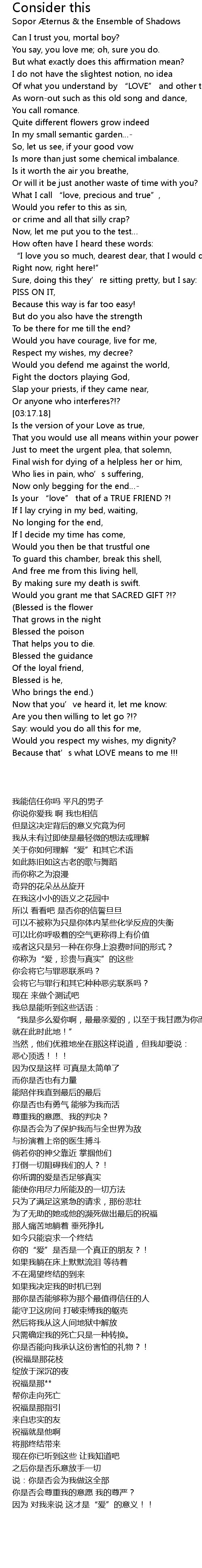 | [05:17.22] | 你是否会尊重我的意愿 我的尊严? |