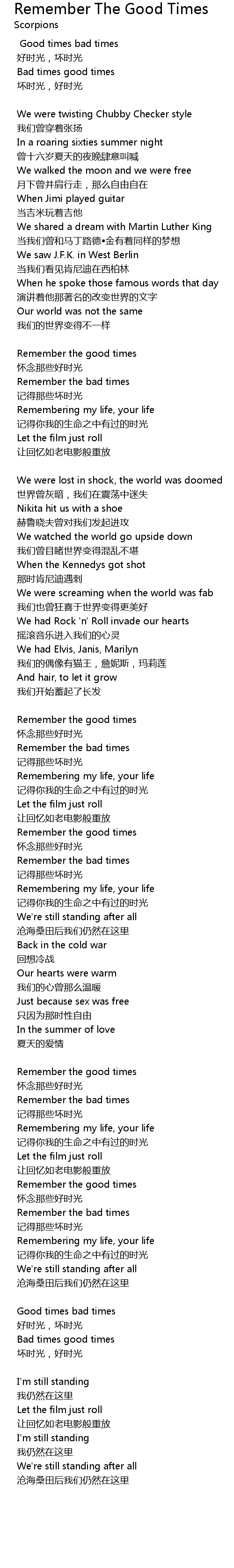 | 歌曲 | Remember The Good Times |