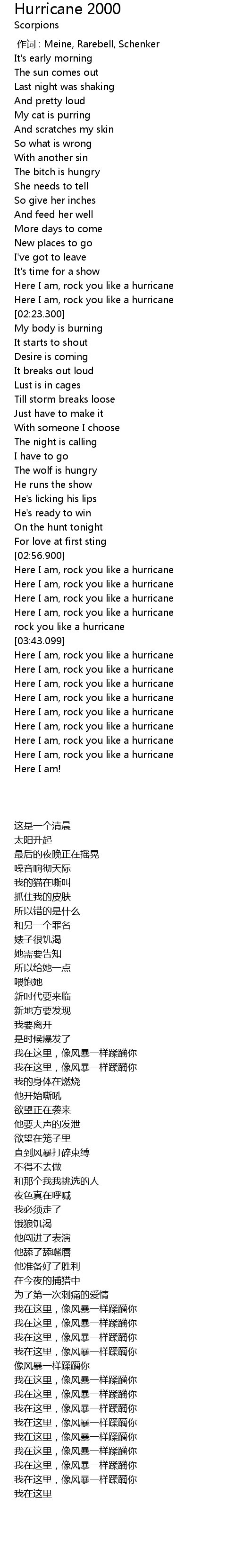 | [02:59.700] | Here I am, rock you like a hurricane |