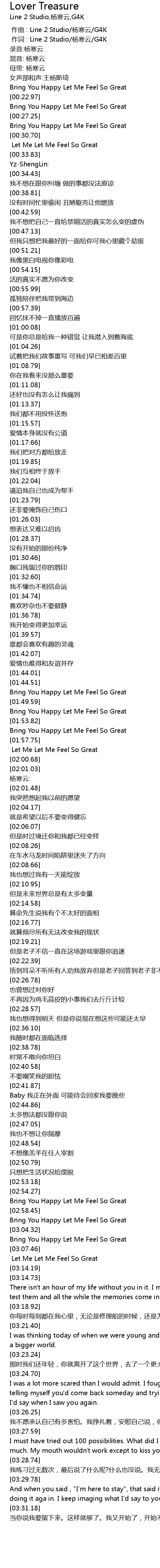 | [01:54.36] | Bring You Happy Let Me Feel So Great |
