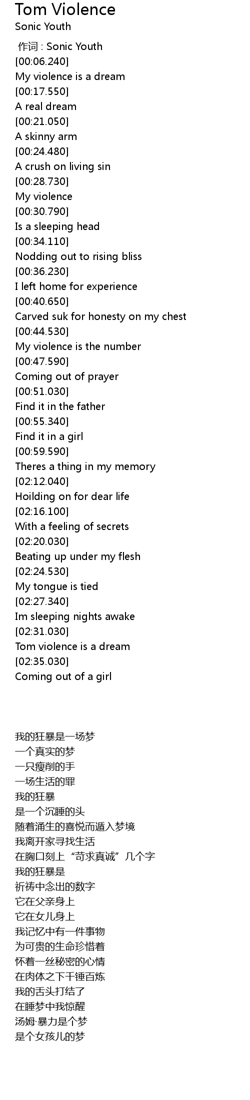 | [02:32.590] | Tom violence is a dream |