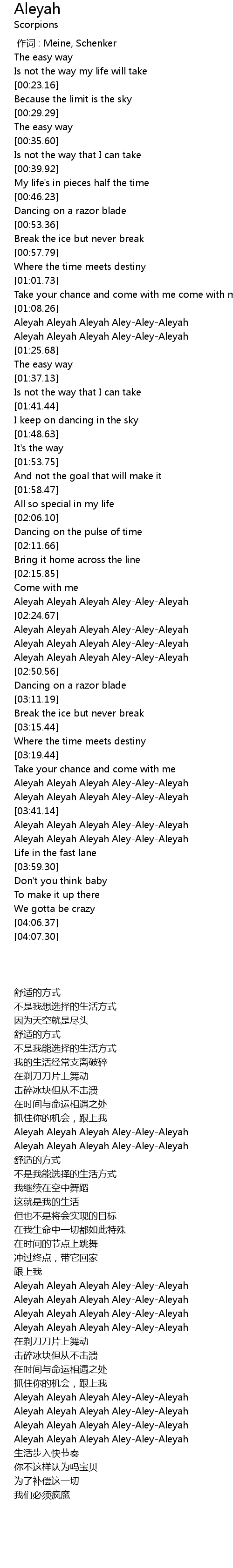 | [03:24.45] | Aleyah Aleyah Aleyah AleyAleyAleyah |
