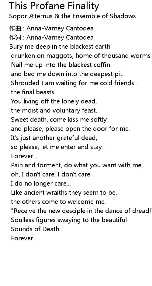 | 歌手 | Sopor Æternus & the Ensemble of Shadows |
