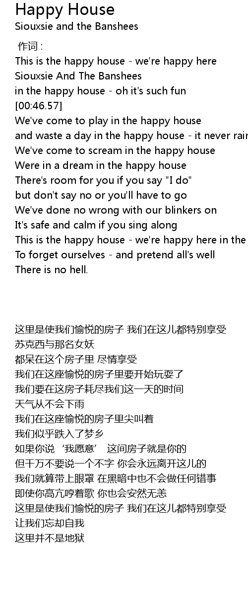 | [01:46.16] | This is the happy house we' re happy here in the happy house |