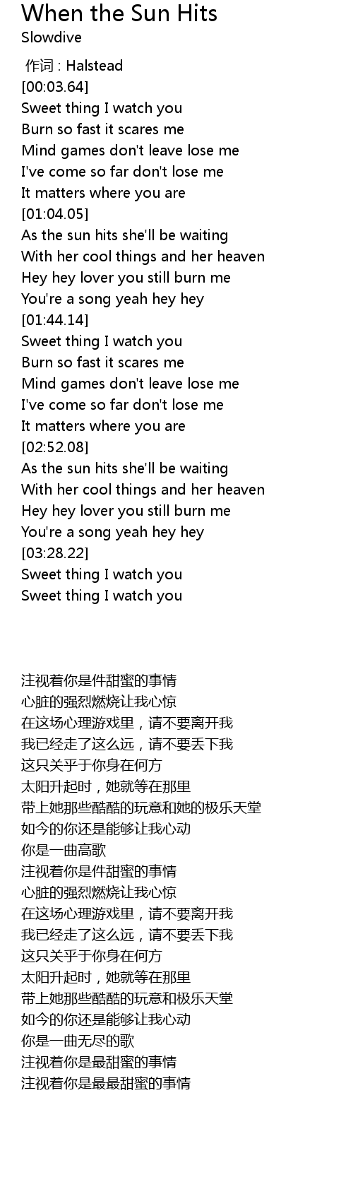 | [03:09.27] | As the sun hits she' ll be waiting |