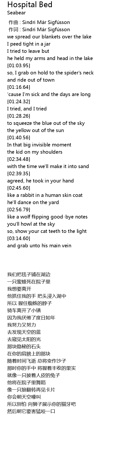 | [00:01.00] | 作词 : Sindri Már Sigfússon |