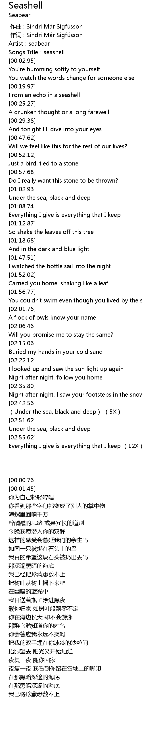 | [02:17.36] | 把我的双手埋在你冰冷的沙粒间 |