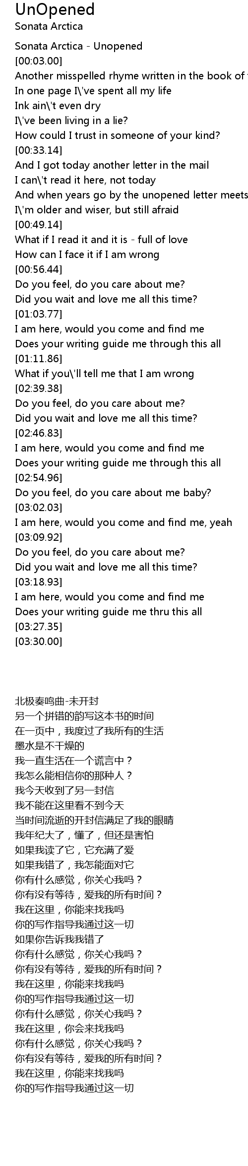 And when years go by the unopened letter meets my eye |
