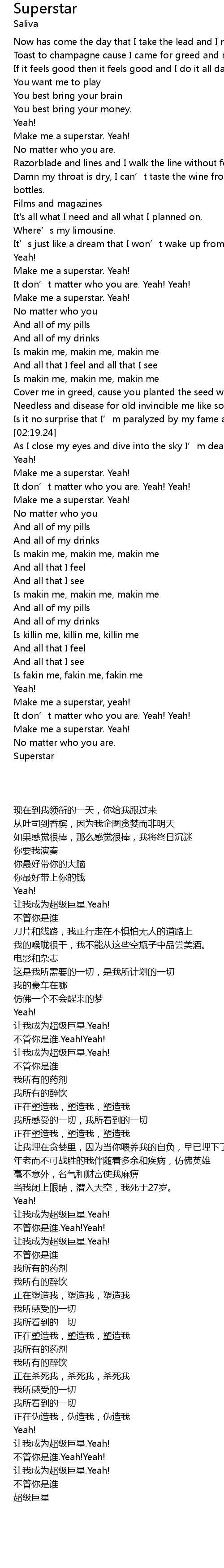 | [02:28.30] | Make me a superstar. Yeah! |