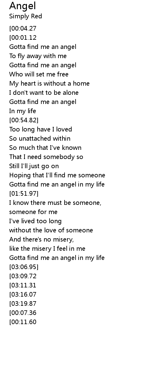 [00:22.52] Gotta find me an angel