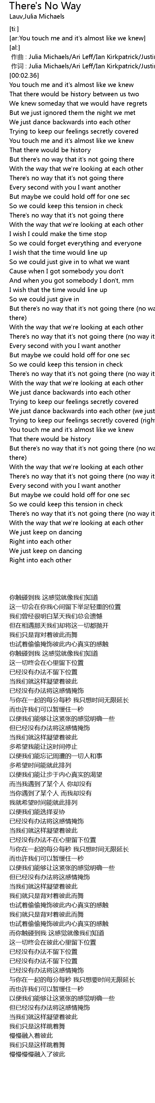 | [02:30.67] | There' s no way that it' s not going there no way it' s not going there |