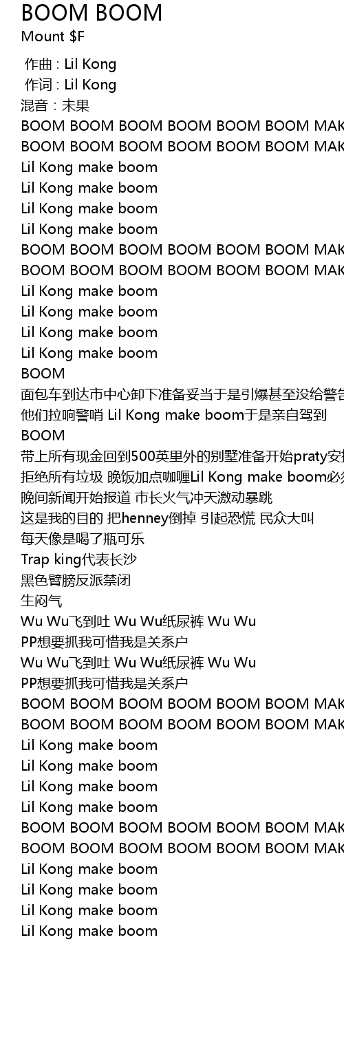 | [00:45.947] | BOOM 面包车到达市中心卸下准备妥当于是引爆甚至没给警告 他们拉响警哨 Lil Kong make boom于是亲自驾到 |